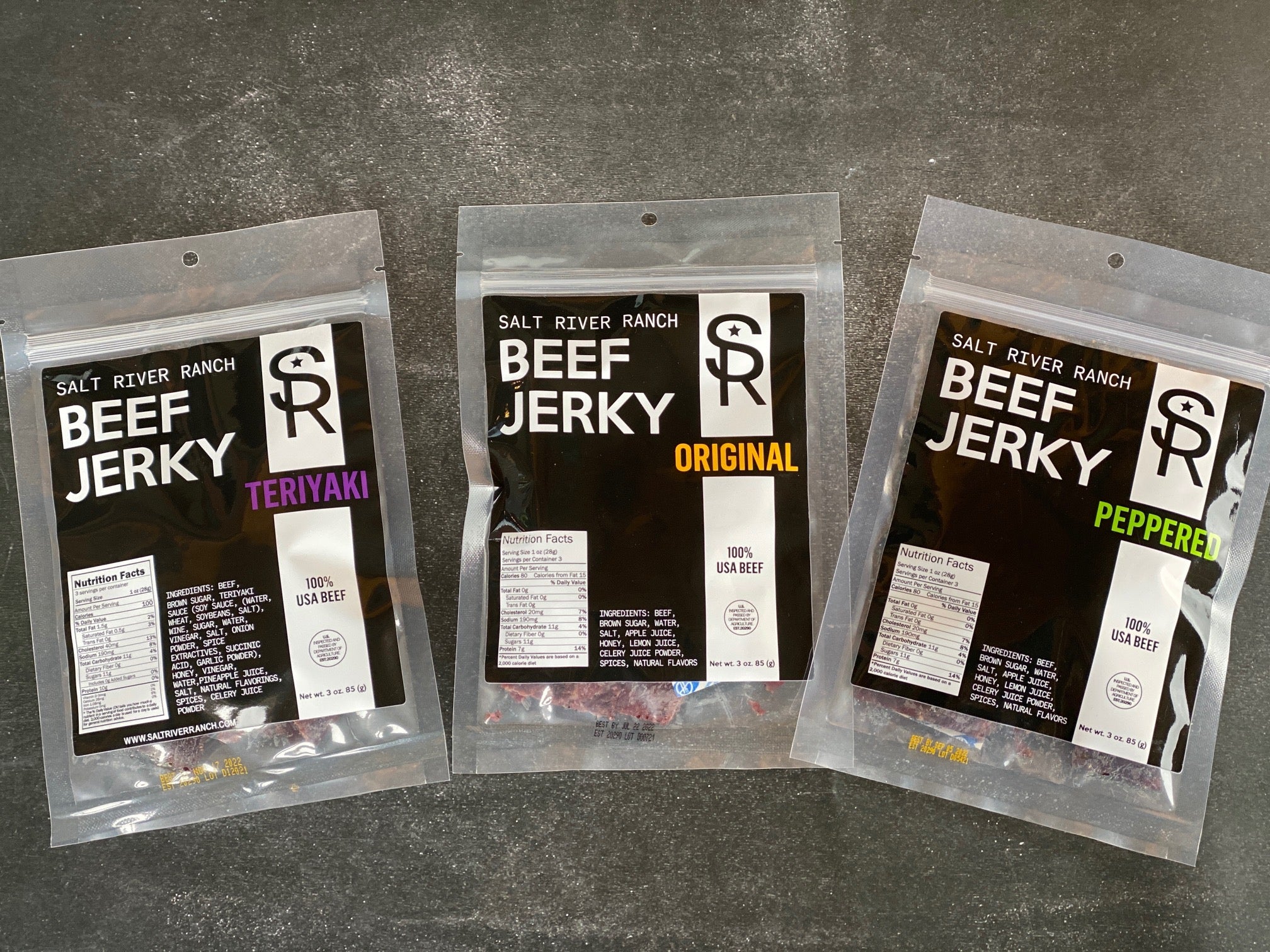 Our 3 oz. pack of resealable beef jerky is sure a favorite by our customers! Comes in Original, Peppered, or Teriyaki Flavor.
