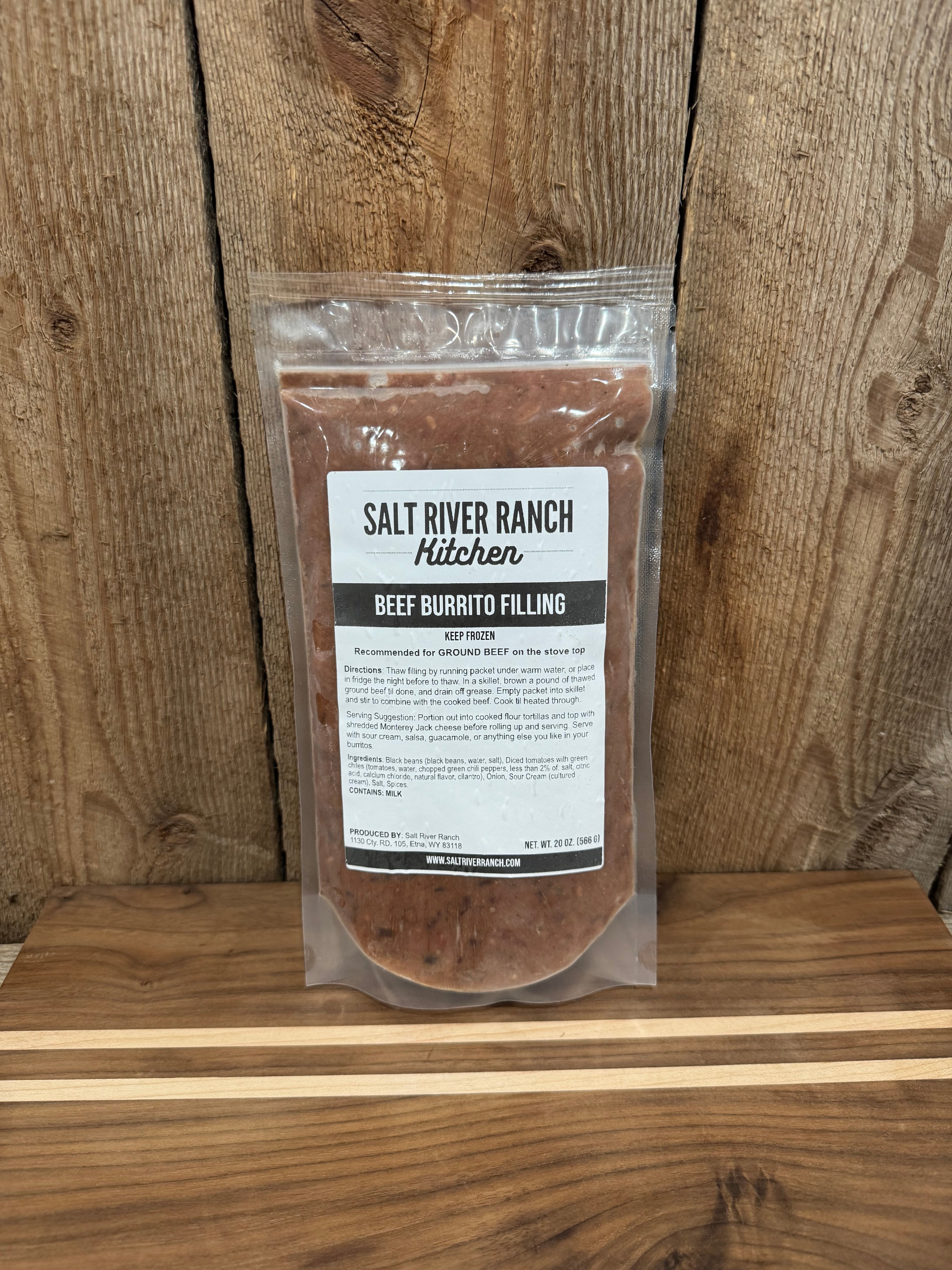 Big flavor, no hassle. Our Beef Burrito Filling is loaded with black beans, tomatoes, peppers, and just enough heat to keep things interesting. Made to pair with Salt River Ranch ground beef, it’s your one-step shortcut to hearty, satisfying burritos. Just brown the beef, stir in the packet, heat it through, and roll it up. Dinner’s done—no sides needed. Comes frozen.