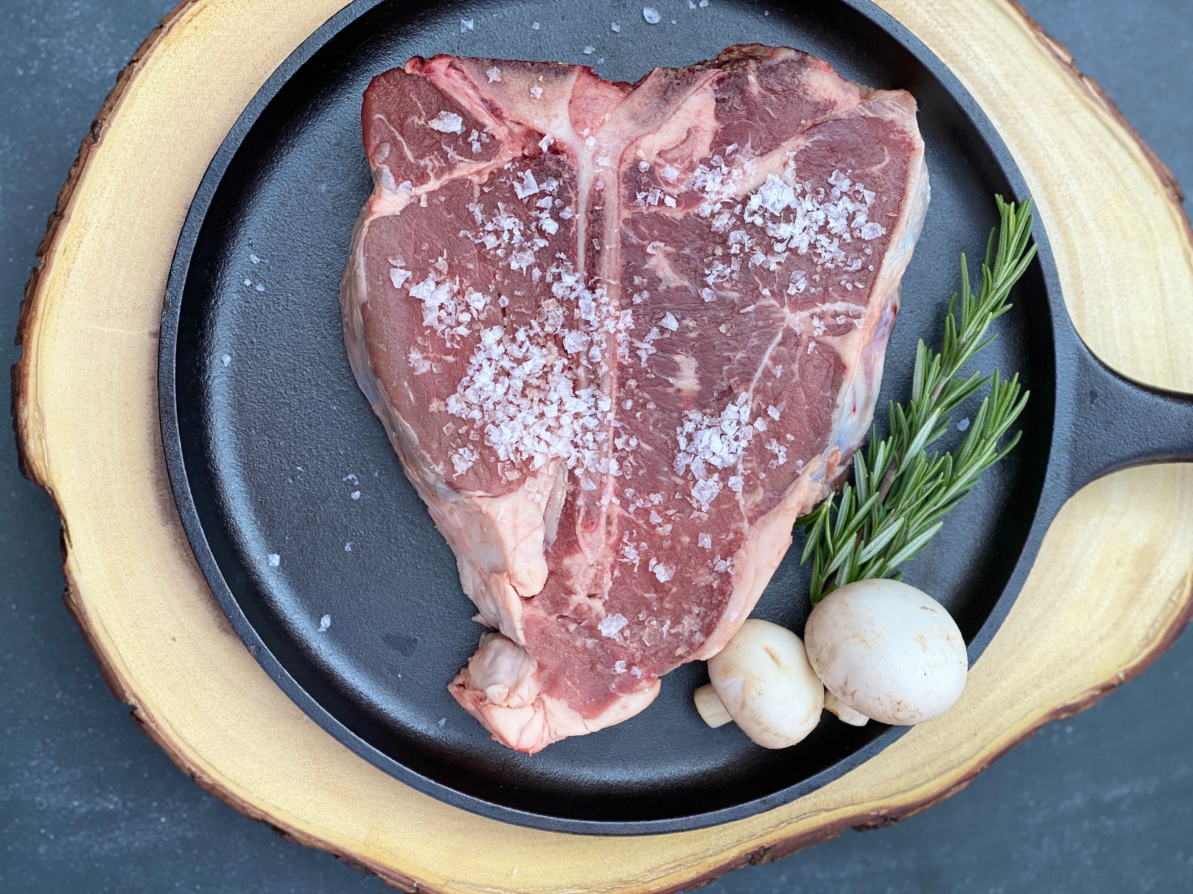 Two steaks in one! Our dry aged porterhouse is the King of steaks and big enough to share! It contains both the New York Strip and the tenderloin (or filet mignon) making your steak dinner full of flavor and tenderness.